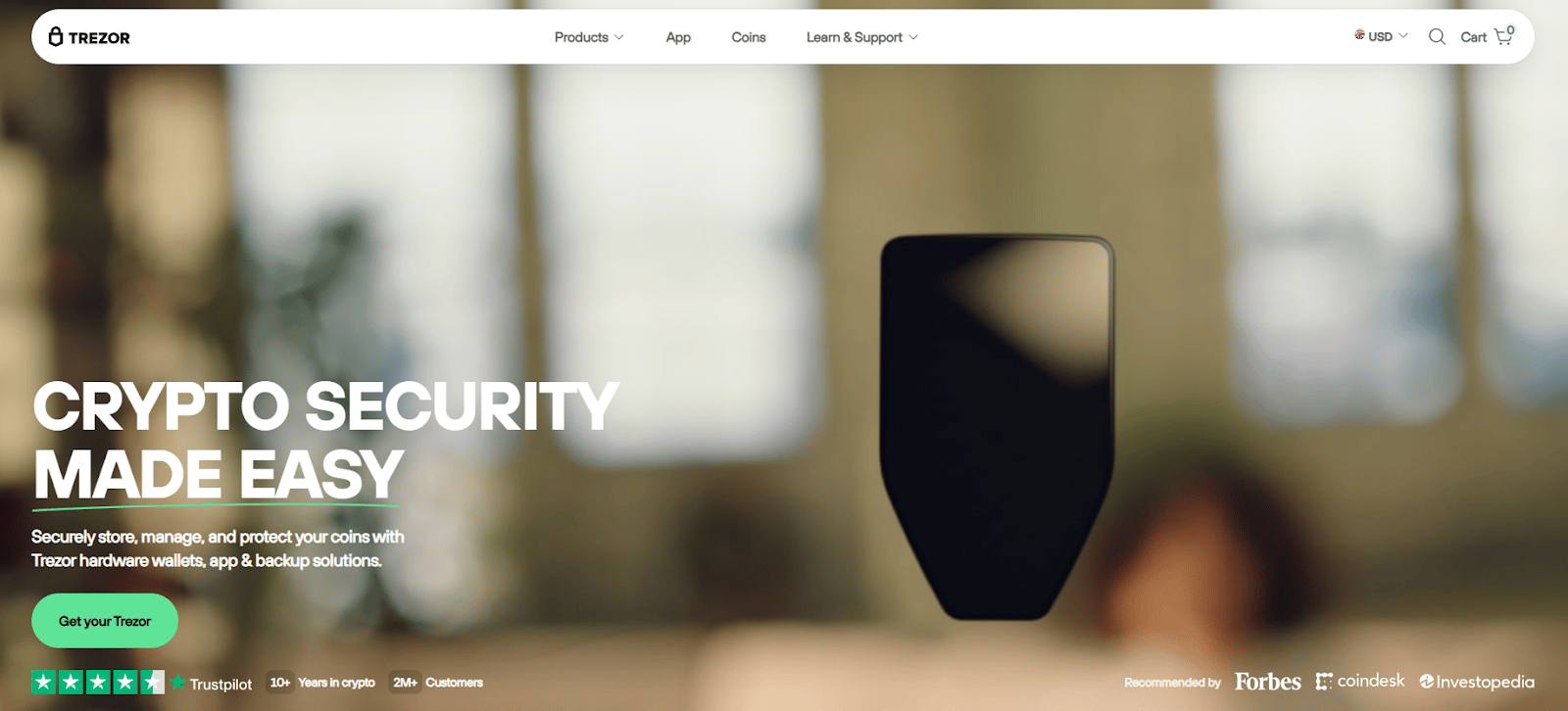 2. Trezor (Model T • Safe 3) — Best open-source experience
