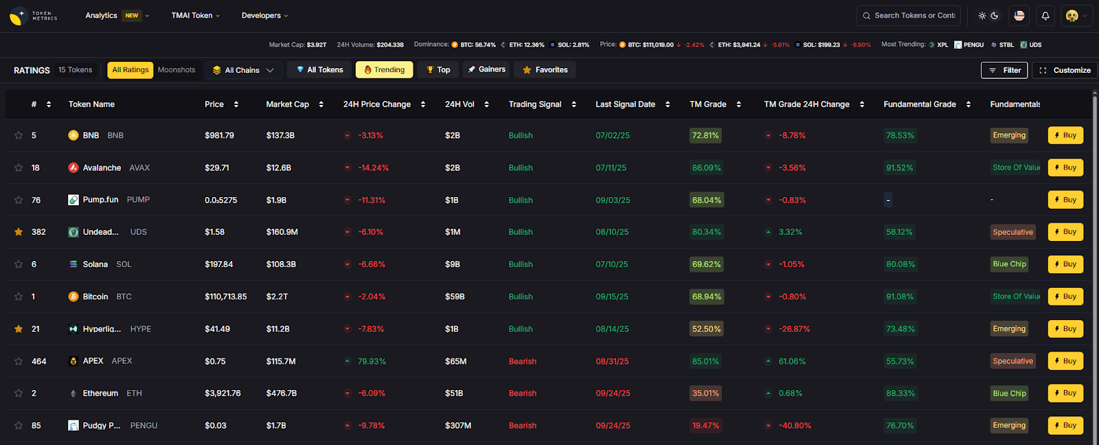 AI Ratings to screen tokens you plan to hold.
